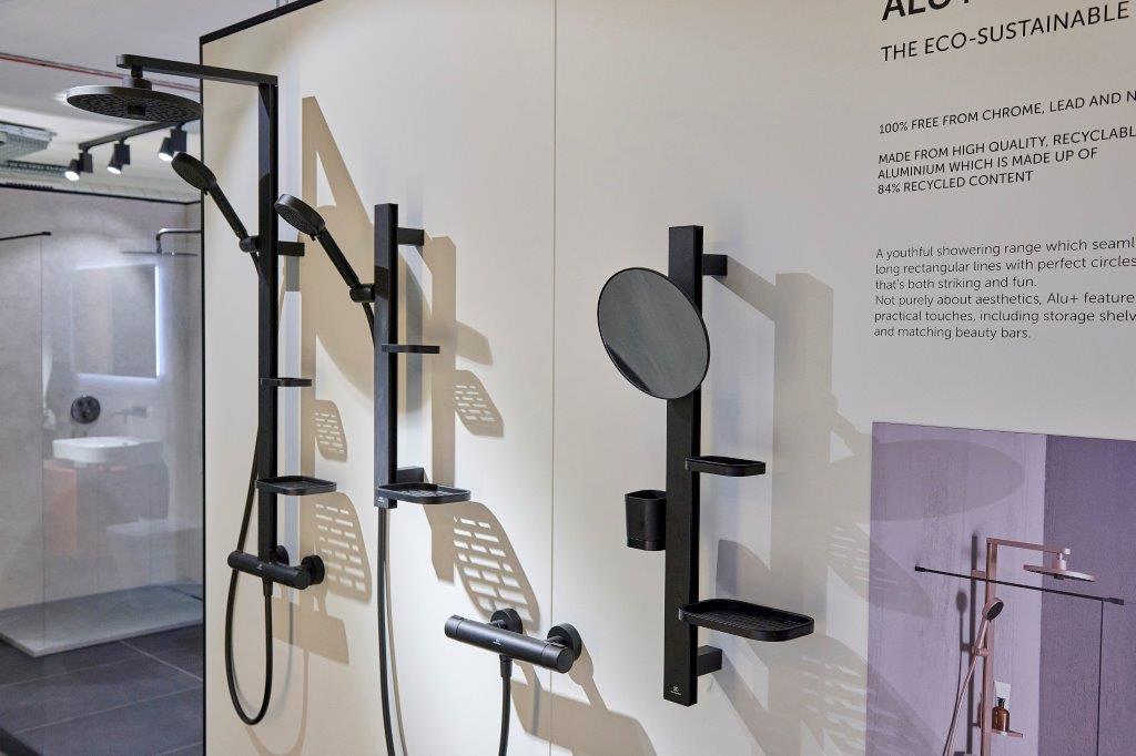 Our contemporary new showering range Alu+ – seen above at the London Design and Specification Centre – will launch this month.