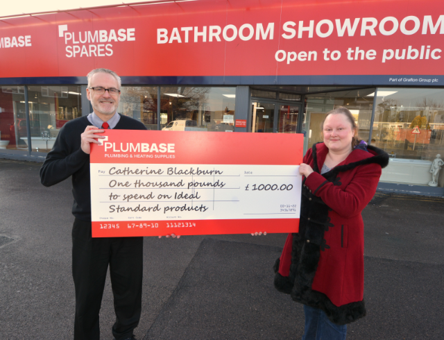Lucky Catherine Blackburn from Bognor Regis is celebrating after winning £1,000 of Ideal Standard products in a competition run by Plumbase.